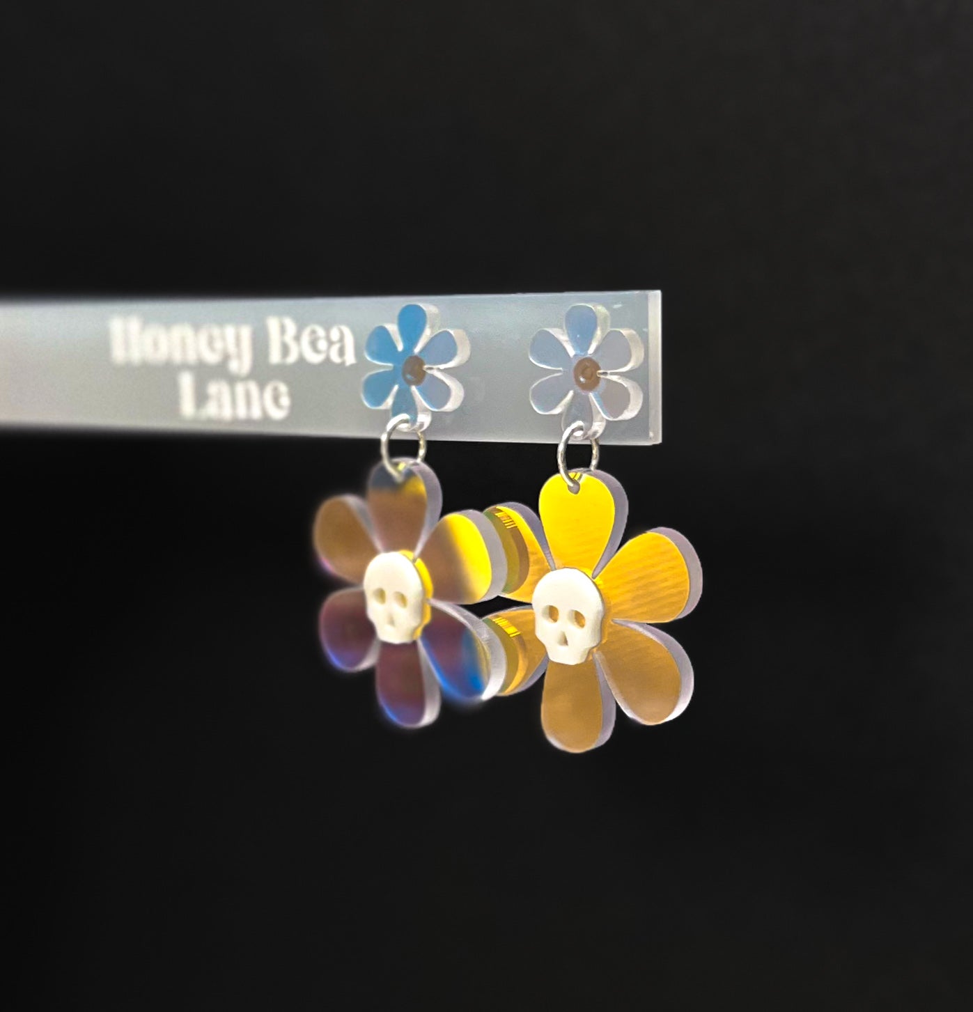 One of my favorites for the spooky season! These are dangles made from iridescent mirrored acrylic and perfect for everyday outfits.
