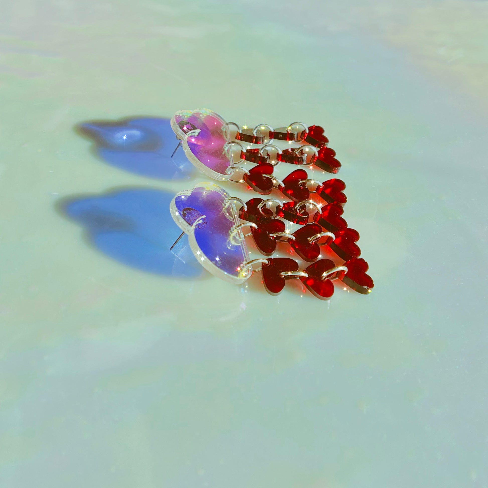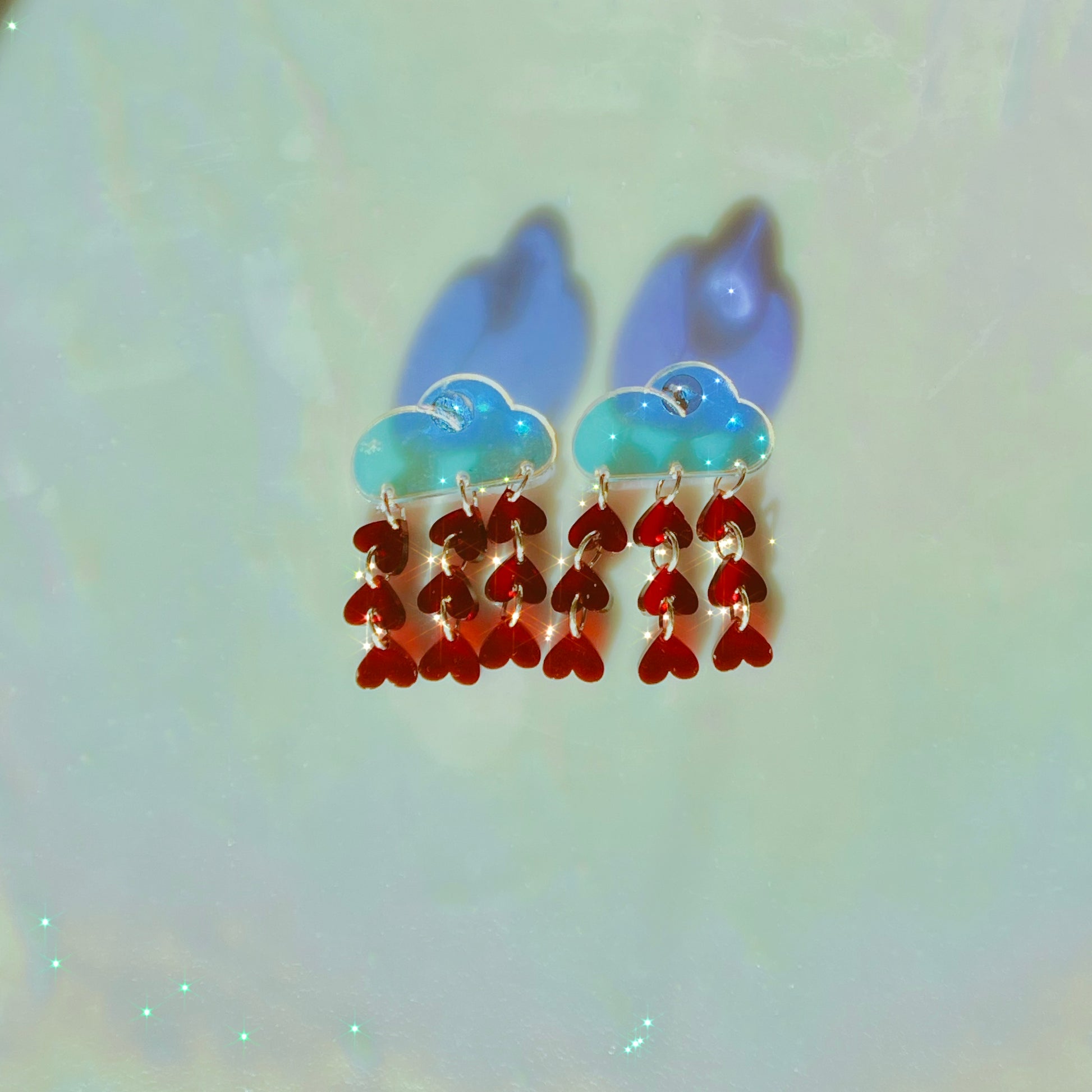 The first acrylic earrings from Honey Bea Lane! These are very light weight and will satisfy all dangle earring needs. The cloud portion of the earrings are made from a clear, yet iridescent acrylic that changes color based on the angle at which the light hits it. Titanium stud posts and silver filled jump rings that guarantee a long earring life. Also perfect for my sensitive ear shawties.