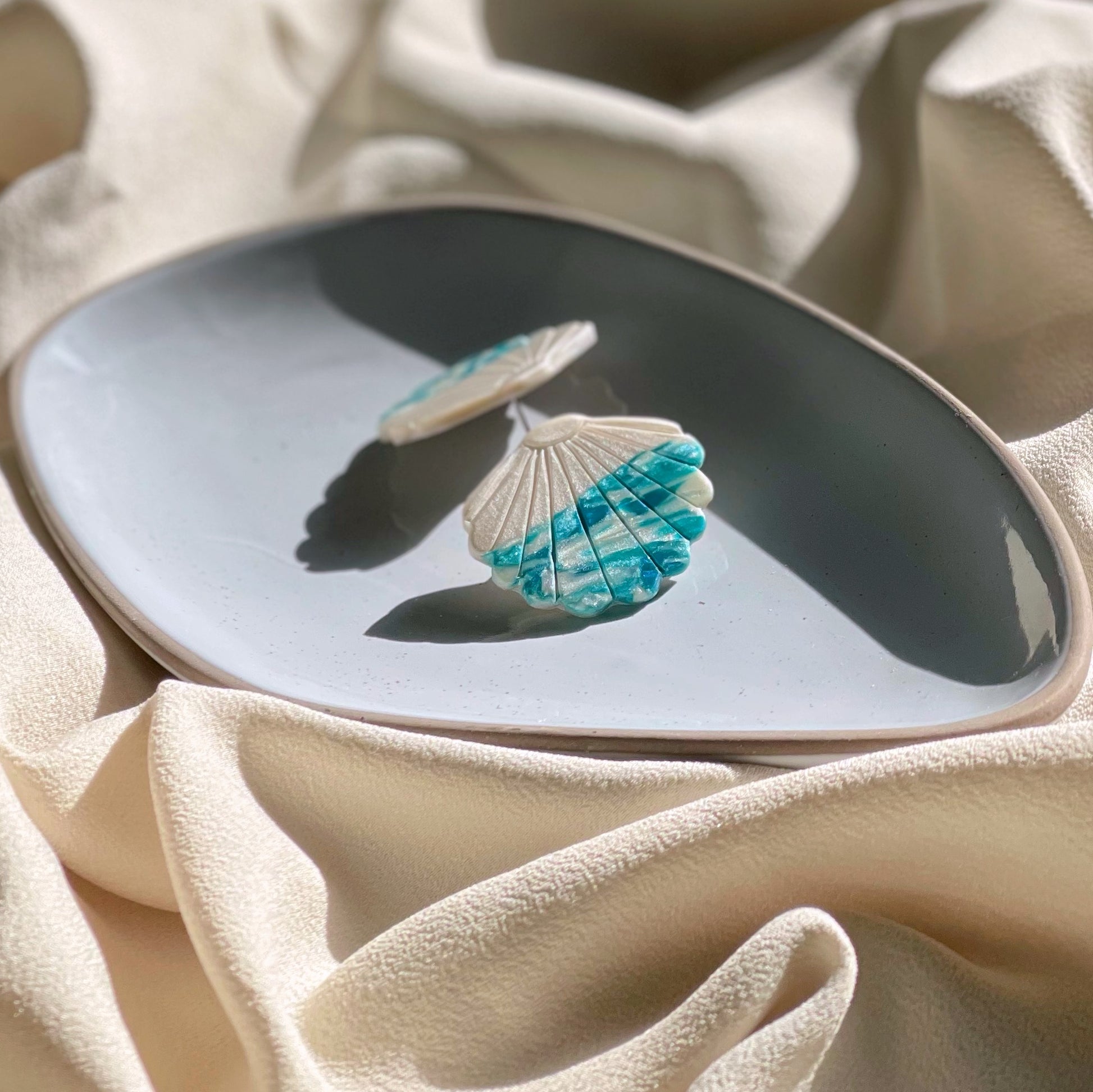 These seashell studs embody the summertime season. Each shell has its edges sanded with a dremel, faces sanded from 400-2000 grit in 5 different steps, buffed twice, bathed and assembled. They've been buffed to a natural shine that allows that pearl color to really come through.