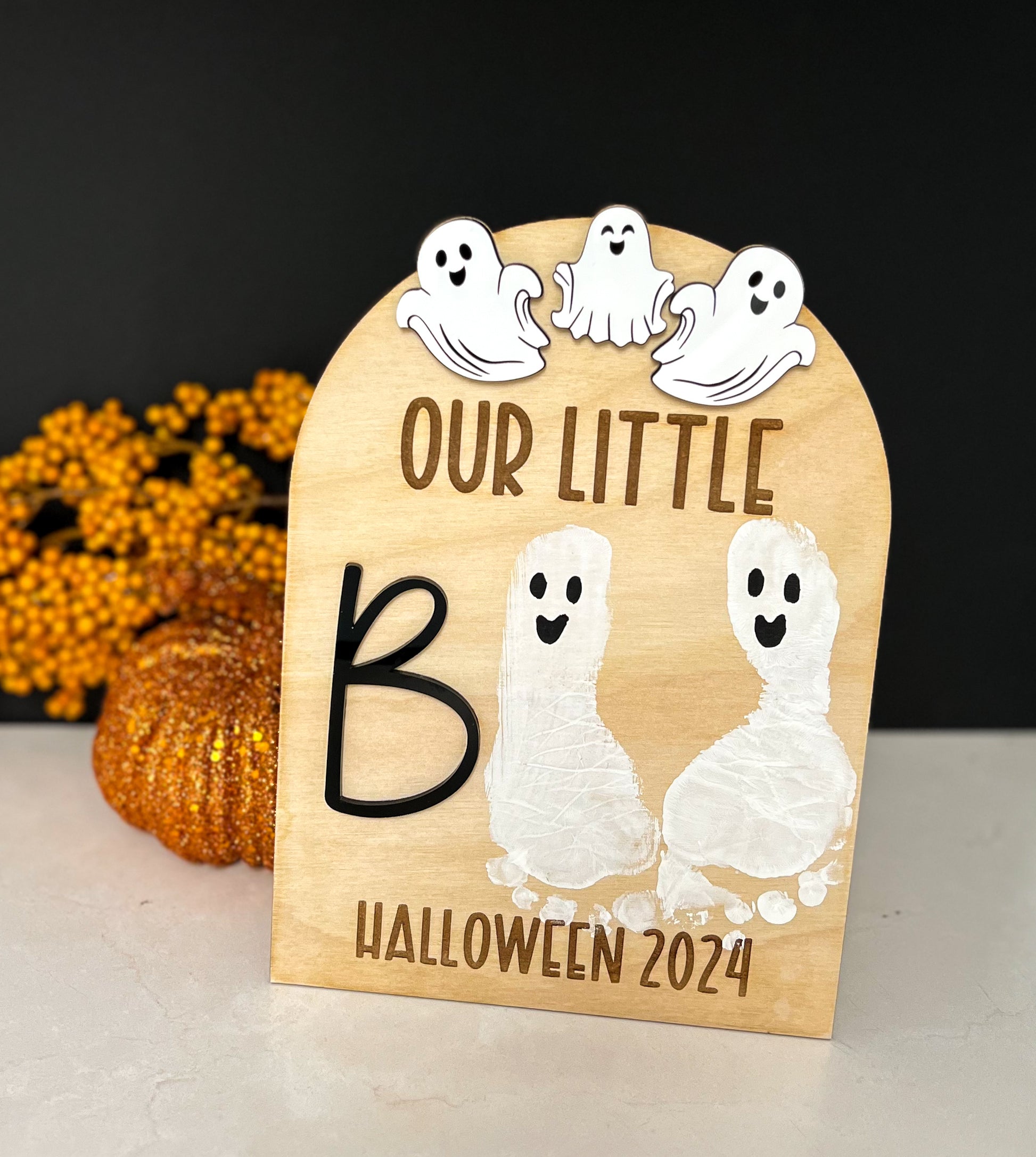 The little foot and hand print crafts Ollie brings home from daycare are always so cute. I wanted to make one that could also sit on the mantle and serve as Halloween decor 👻👻